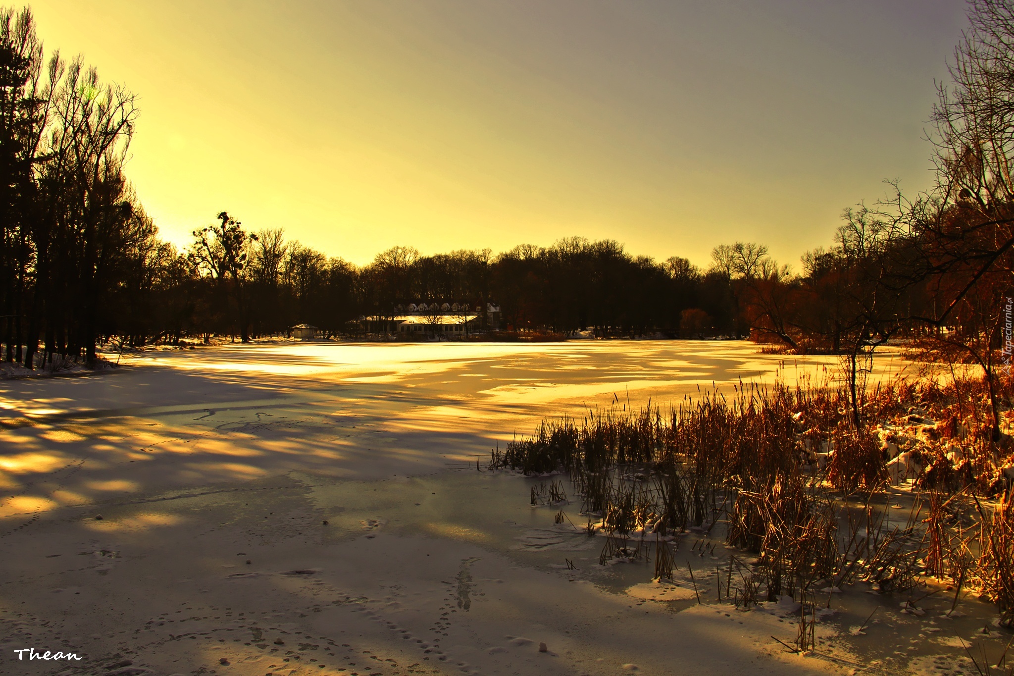 Edytor tapety: Zamarznięte, Jezioro, Zima, Drzewa