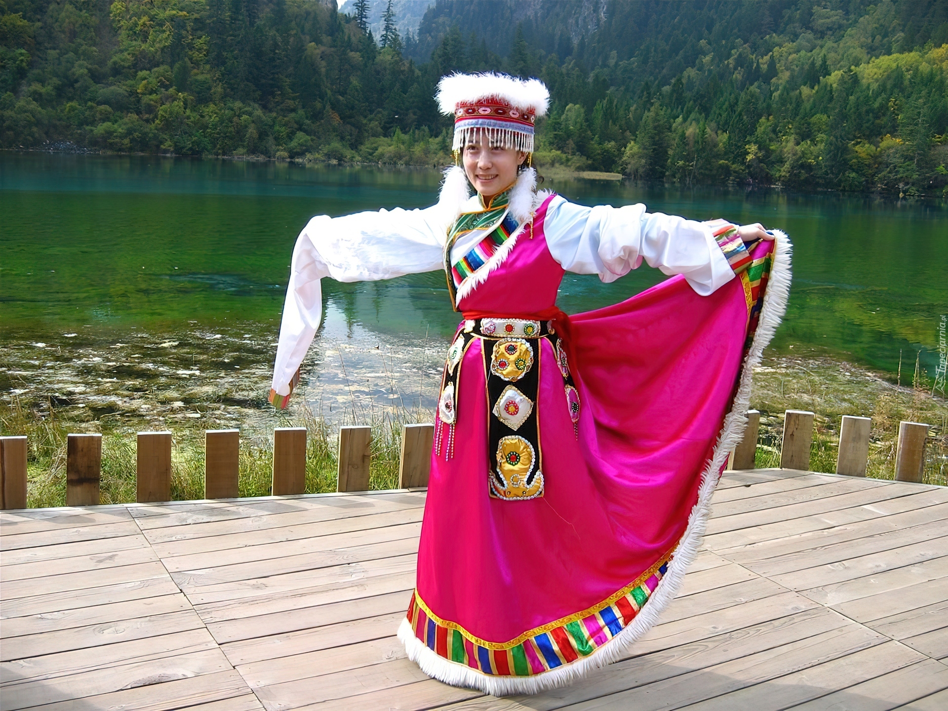 Edytor tapety: Dziewczynka, Chinka, Jezioro, Lasy, Chiny