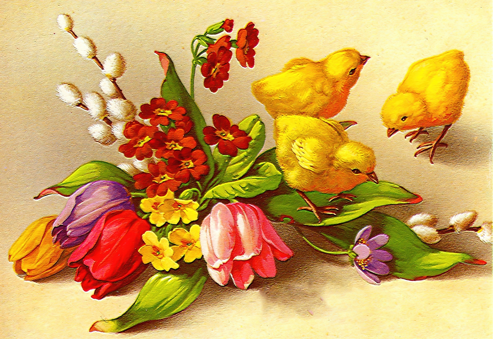 Edytor tapety: Wielkanoc, Kurczaczki, Kwiaty