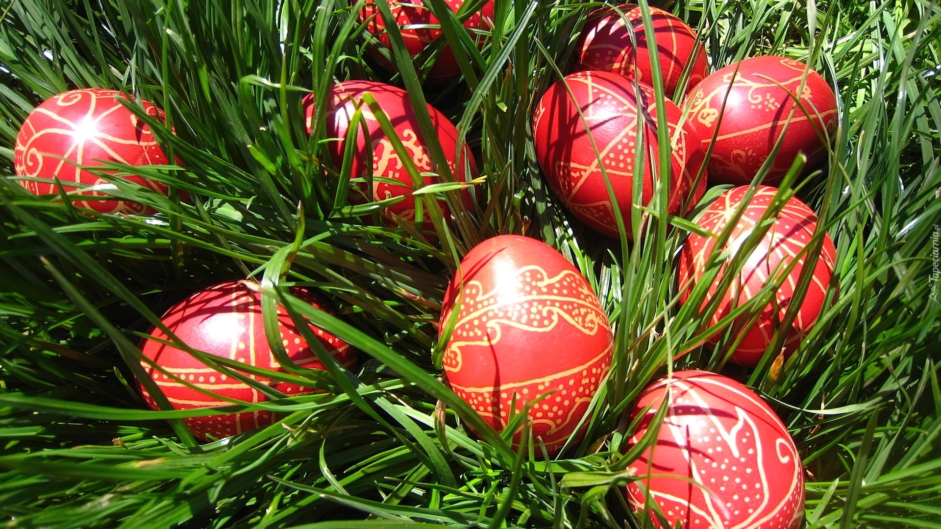 Edytor tapety: Czerwone, Pisanki, Trawa, Wielkanoc