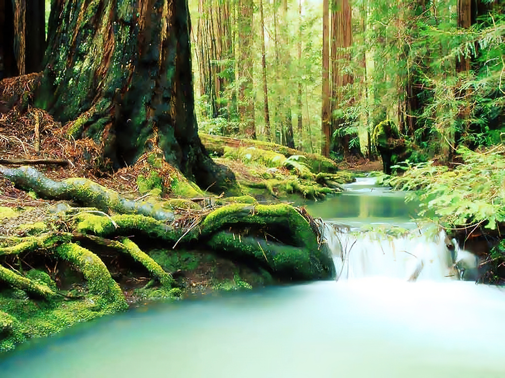 Edytor tapety: Las, Rzeczka, Wodospad