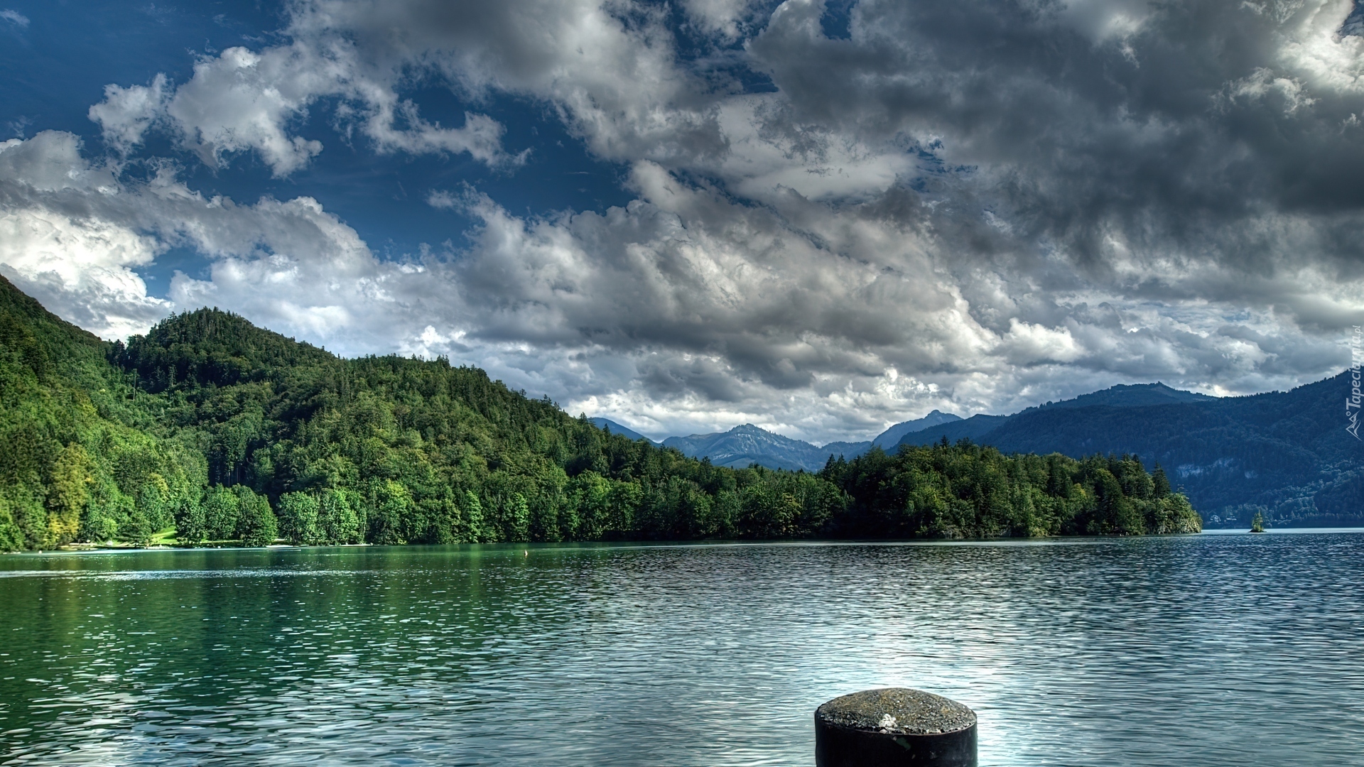 Edytor tapety: Chmury, Góry, Lasy, Rzeka