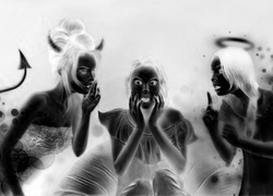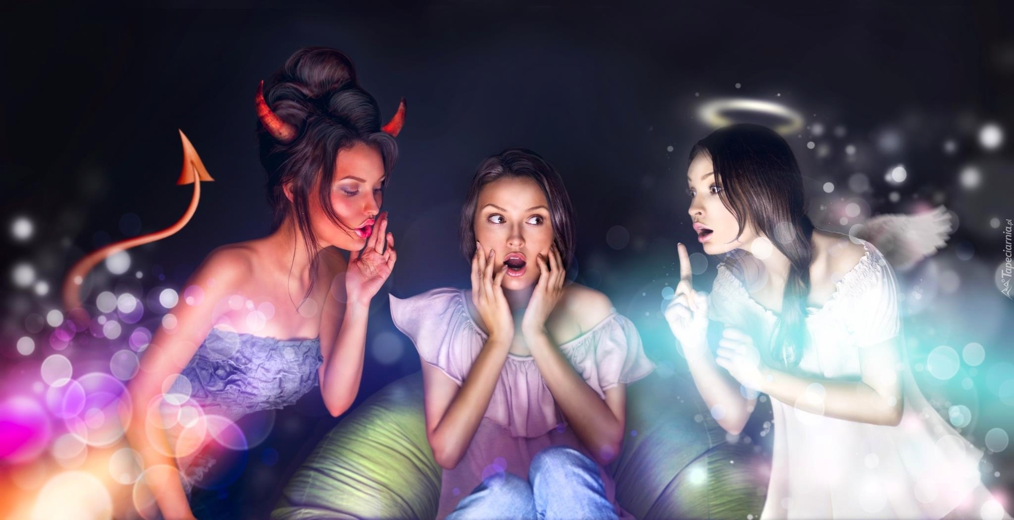 Edytor tapety: Trzy, Kobiety, Aniołek, Diabełek