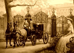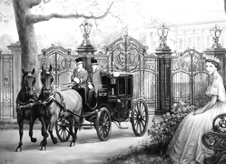 Edytor tapety: Dziewczyna, Królowa, Powóz, Pałac, Konie