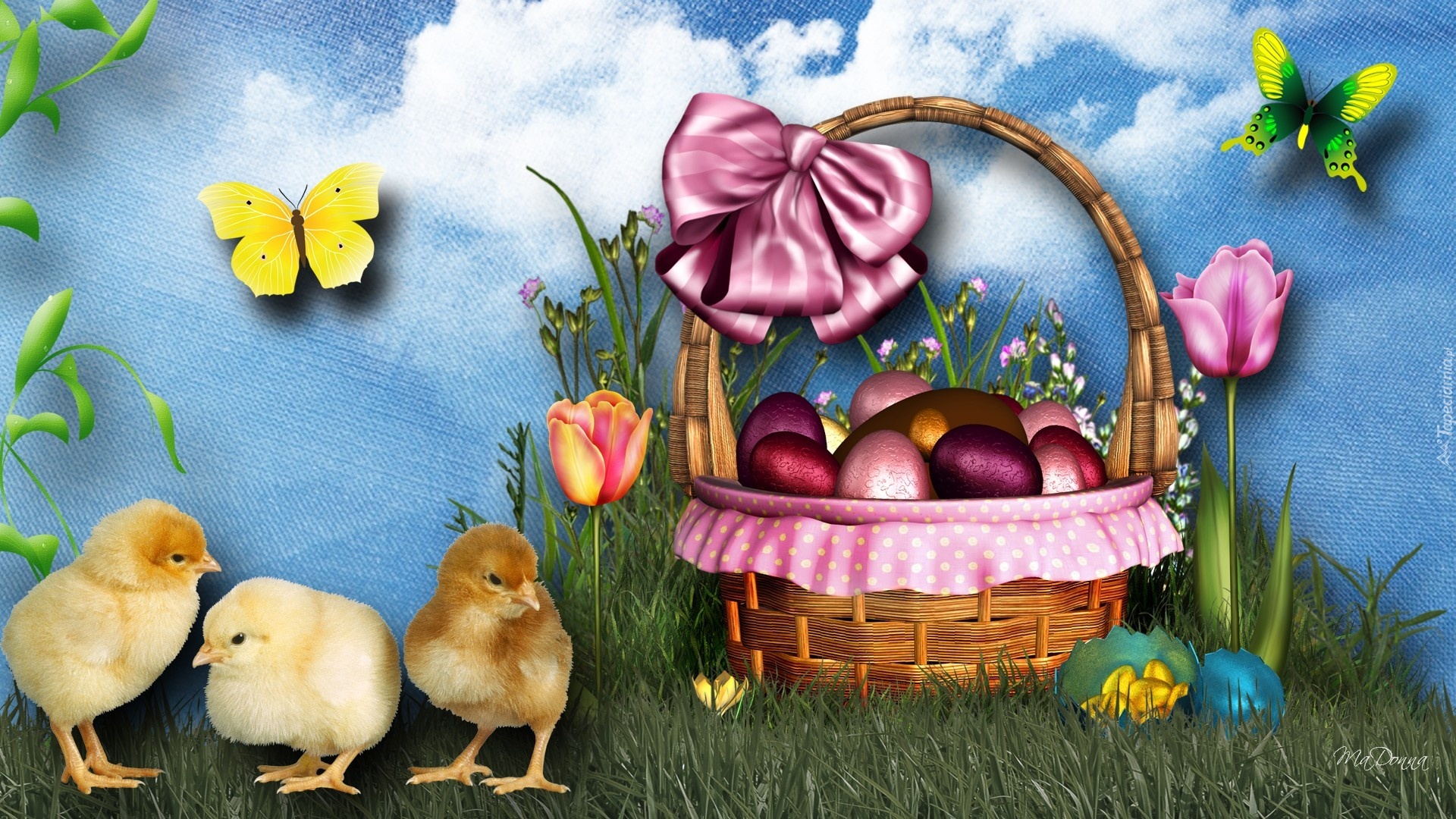 Edytor tapety: Kurczaczki, Kolorowe, Kwiatki, Motylki