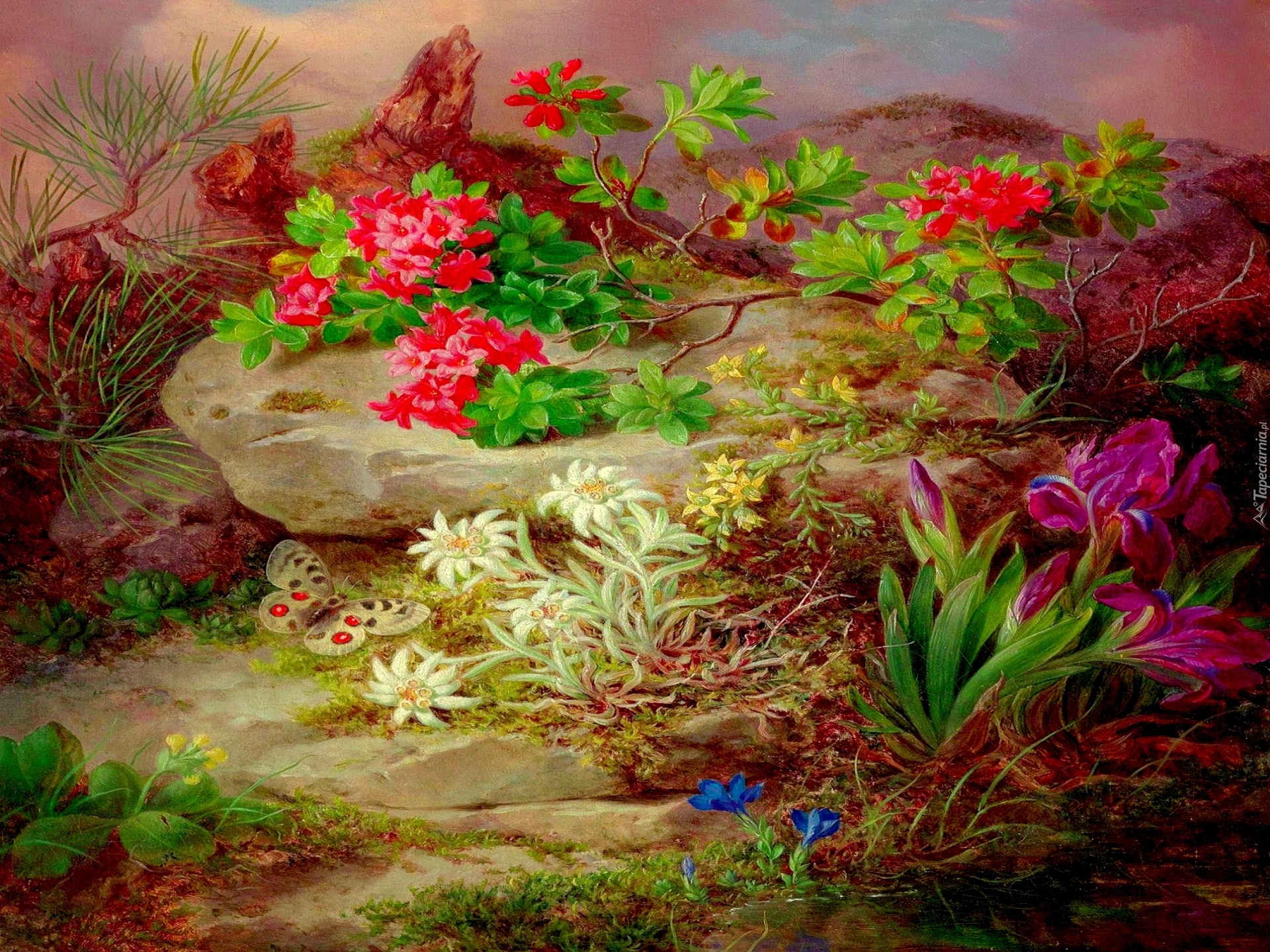 Edytor tapety: Kwiaty, Motyl