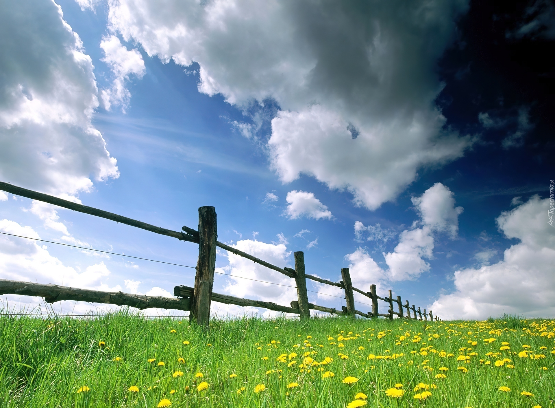 Edytor tapety: Łąka, Kwiatki, Płotek, Chmury