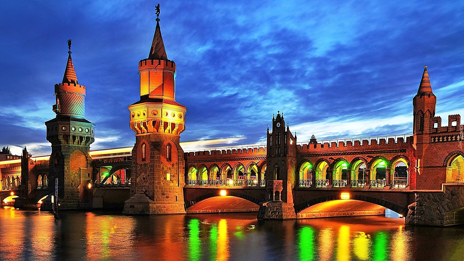 Edytor tapety: Oświetlony, Most, Berlin, Niemcy