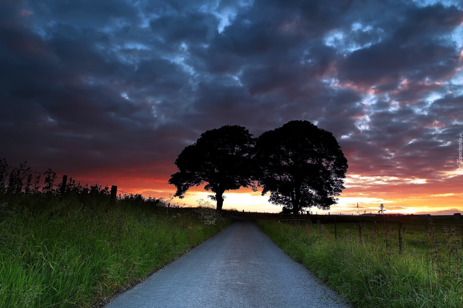 Edytor tapety: Drzewa, Droga, Zachmurzone, Niebo