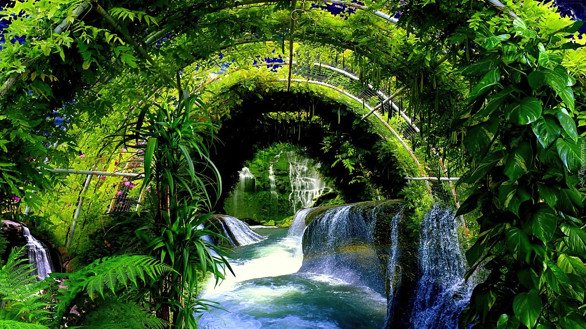 Edytor tapety: Ogród, Pergola, Zieleń, Wodospady