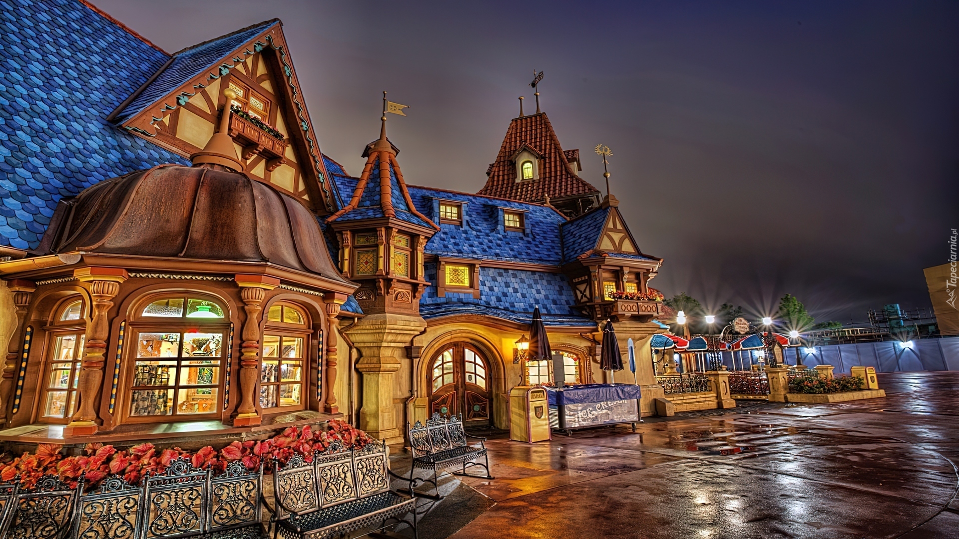 Edytor tapety: Miasto, Noc, Budynek, Ulica