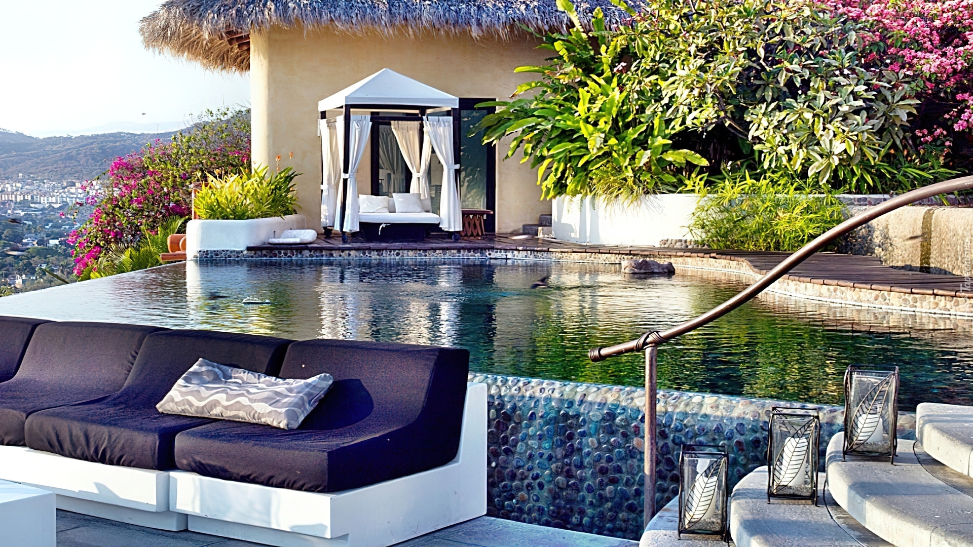 Edytor tapety: Dom, Basen, Zieleń