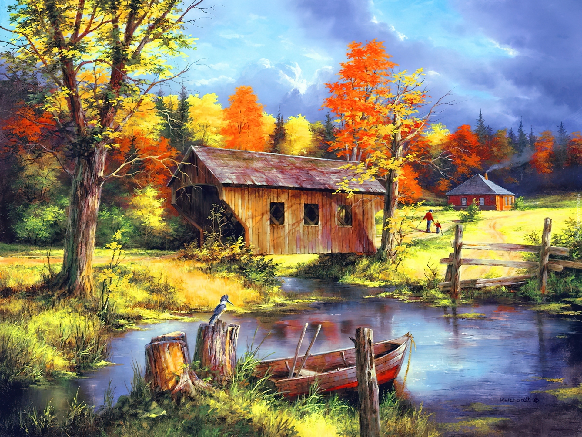 Edytor tapety: Szopa, Staw, Łódka