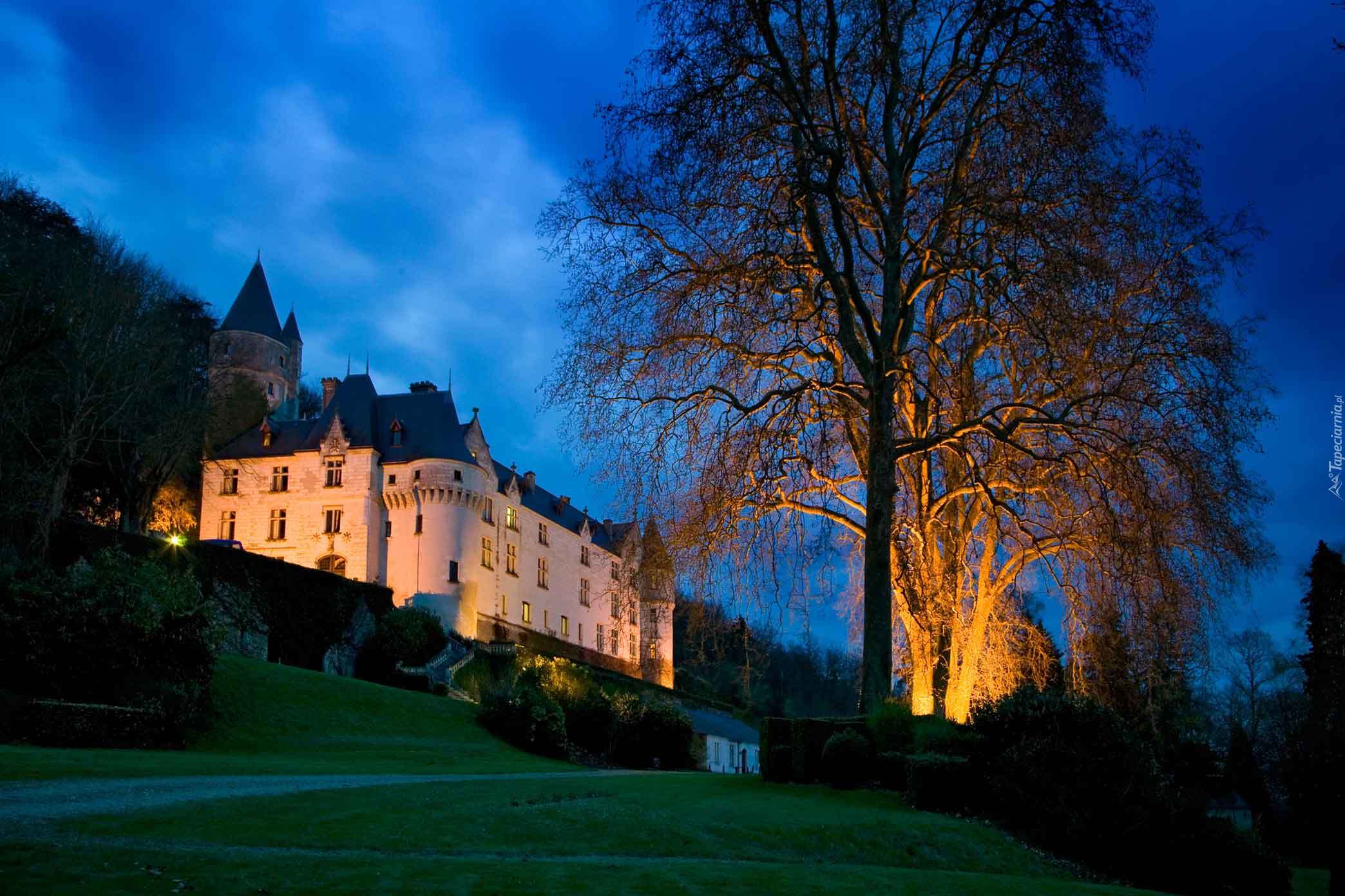 Edytor tapety: Oświetlony, Zamek, Amboise, Francja, Noc