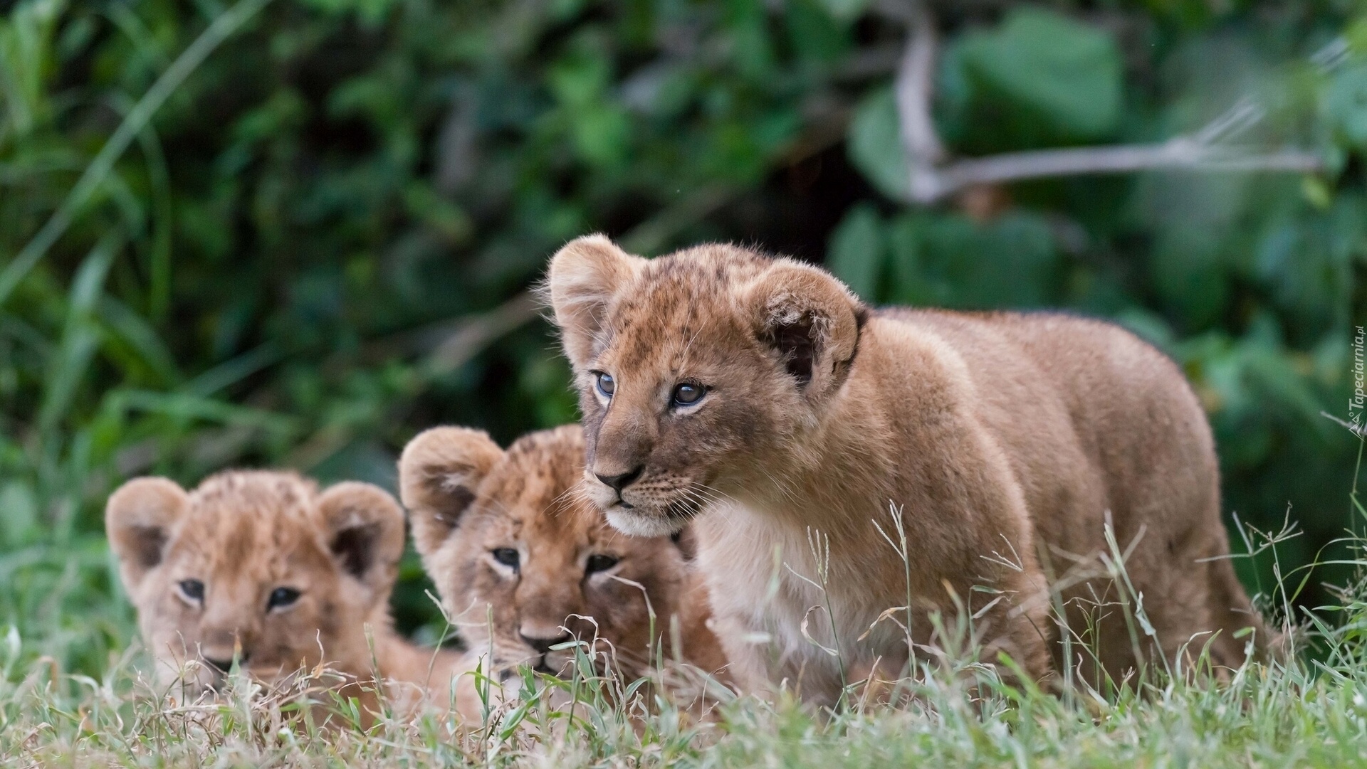 Edytor tapety: Trzy, Małe, Lwiątka, Trawa