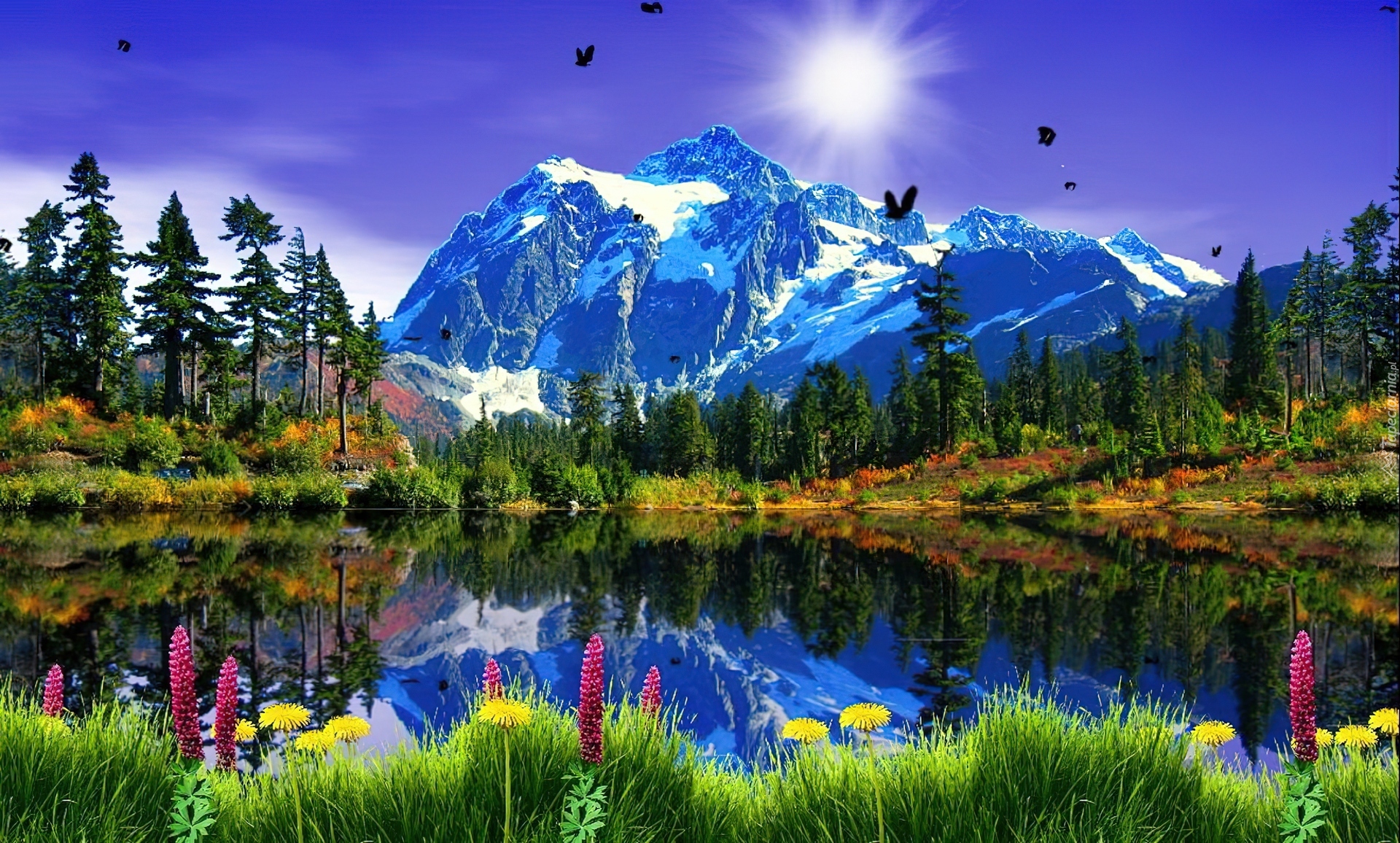 Edytor tapety: Góry, Jezioro, Las