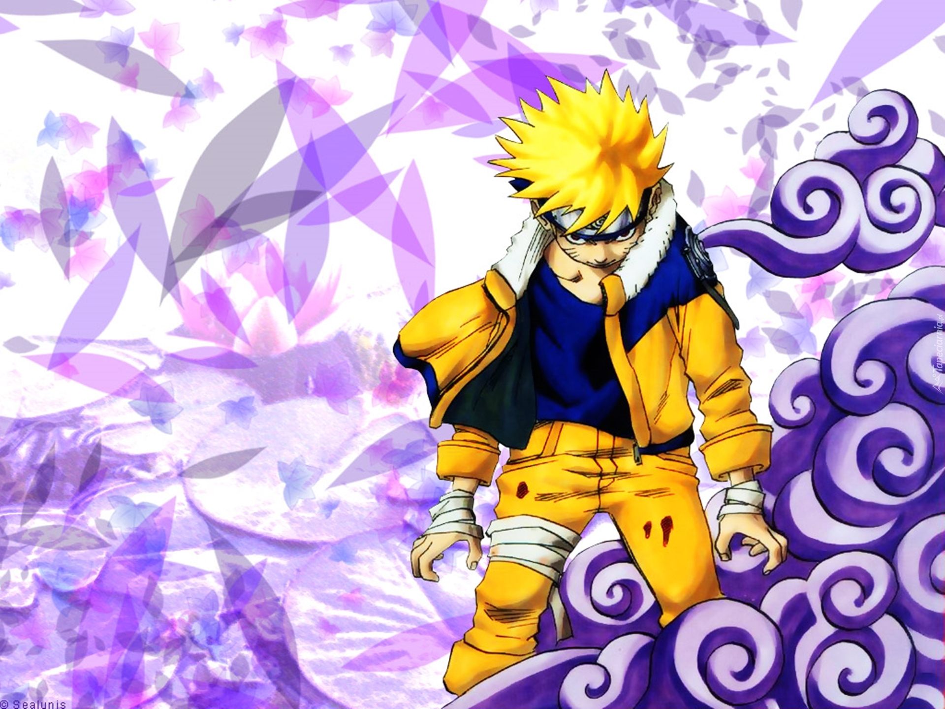 Edytor tapety: Naruto, żółty strój, fioletowe tło