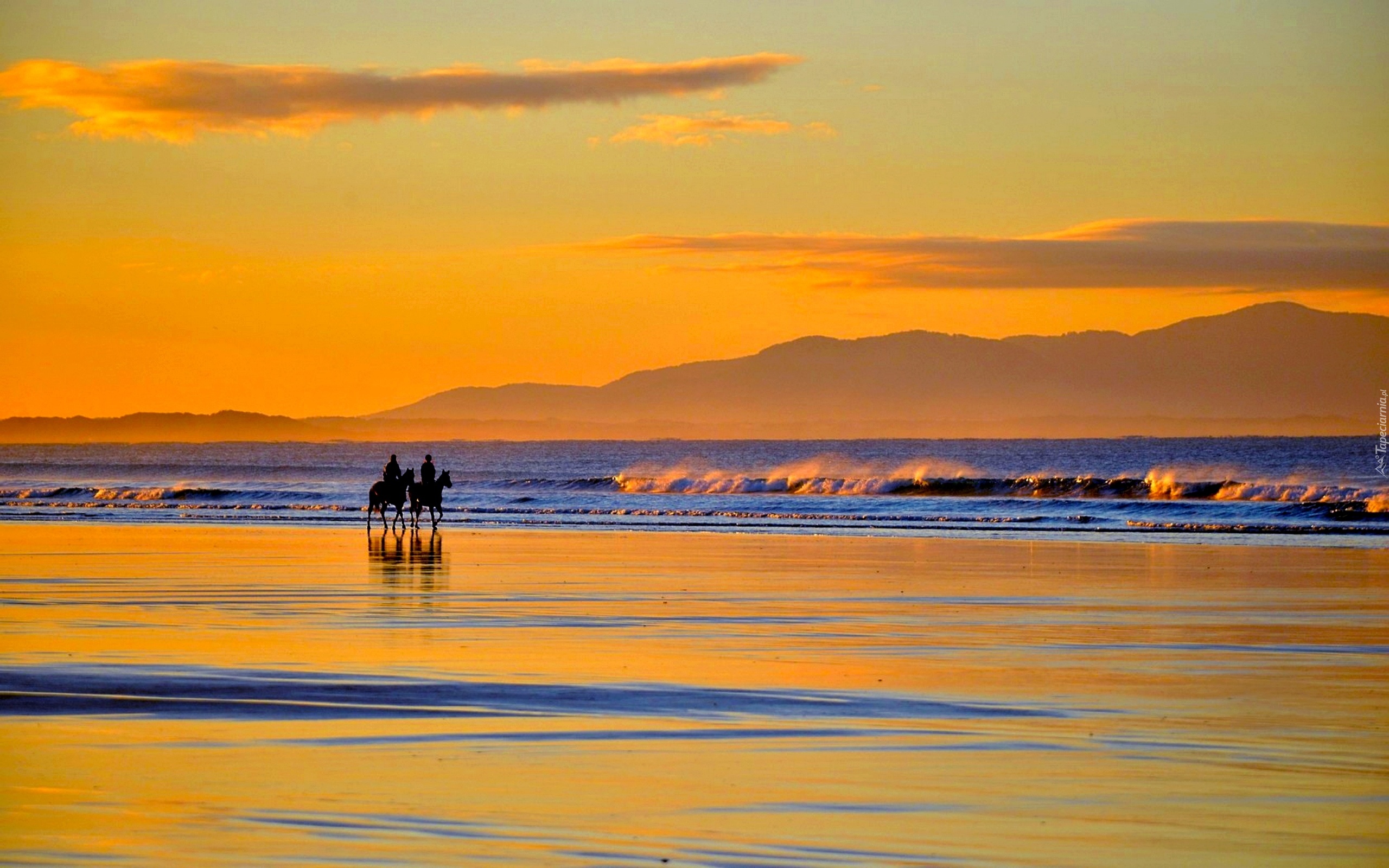 Edytor tapety: Morze, Plaza, Jeźdźcy, Zachód, Słońca