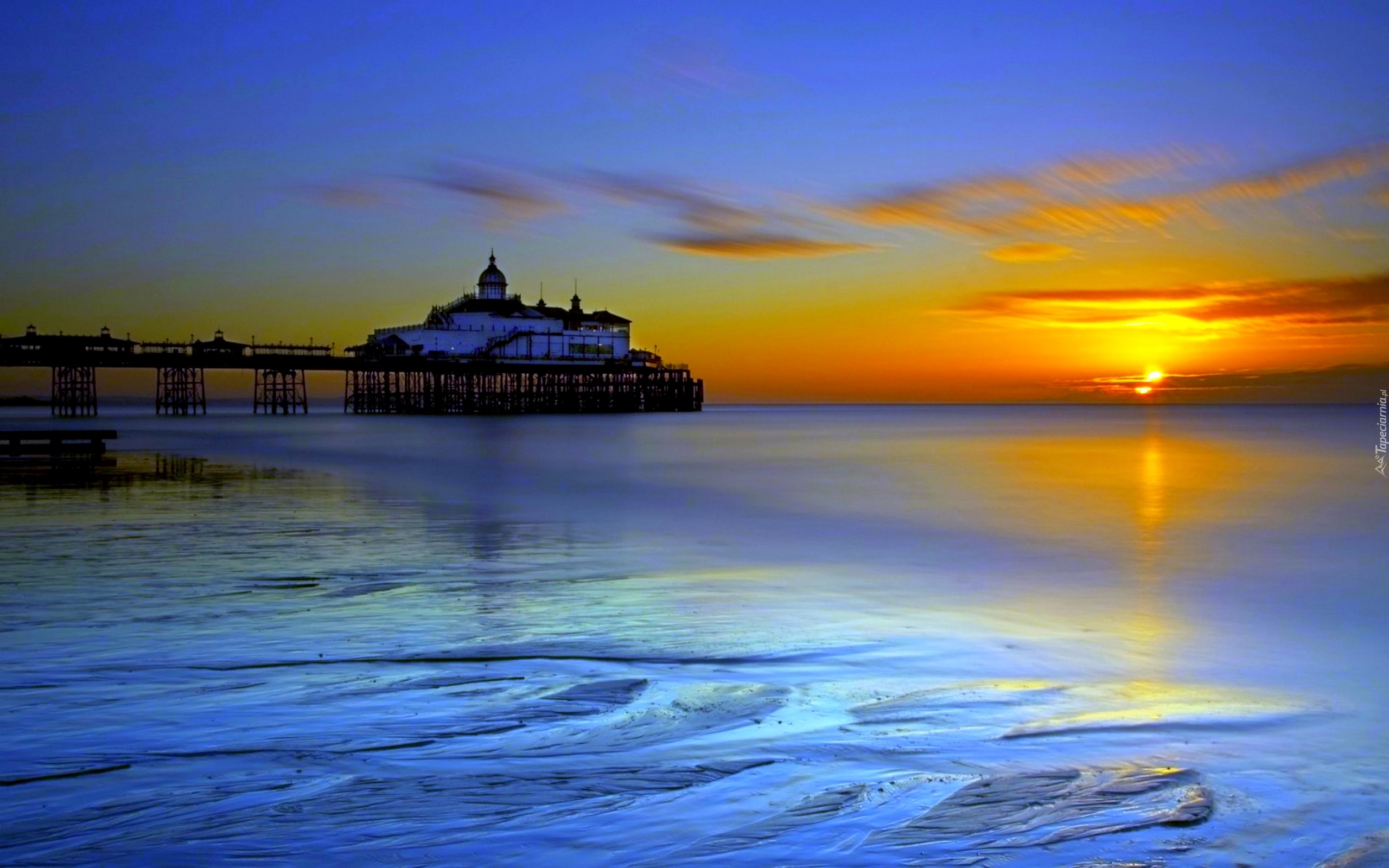 Edytor tapety: Morze, Plaża, Molo, Dom, Zachód, Słońca