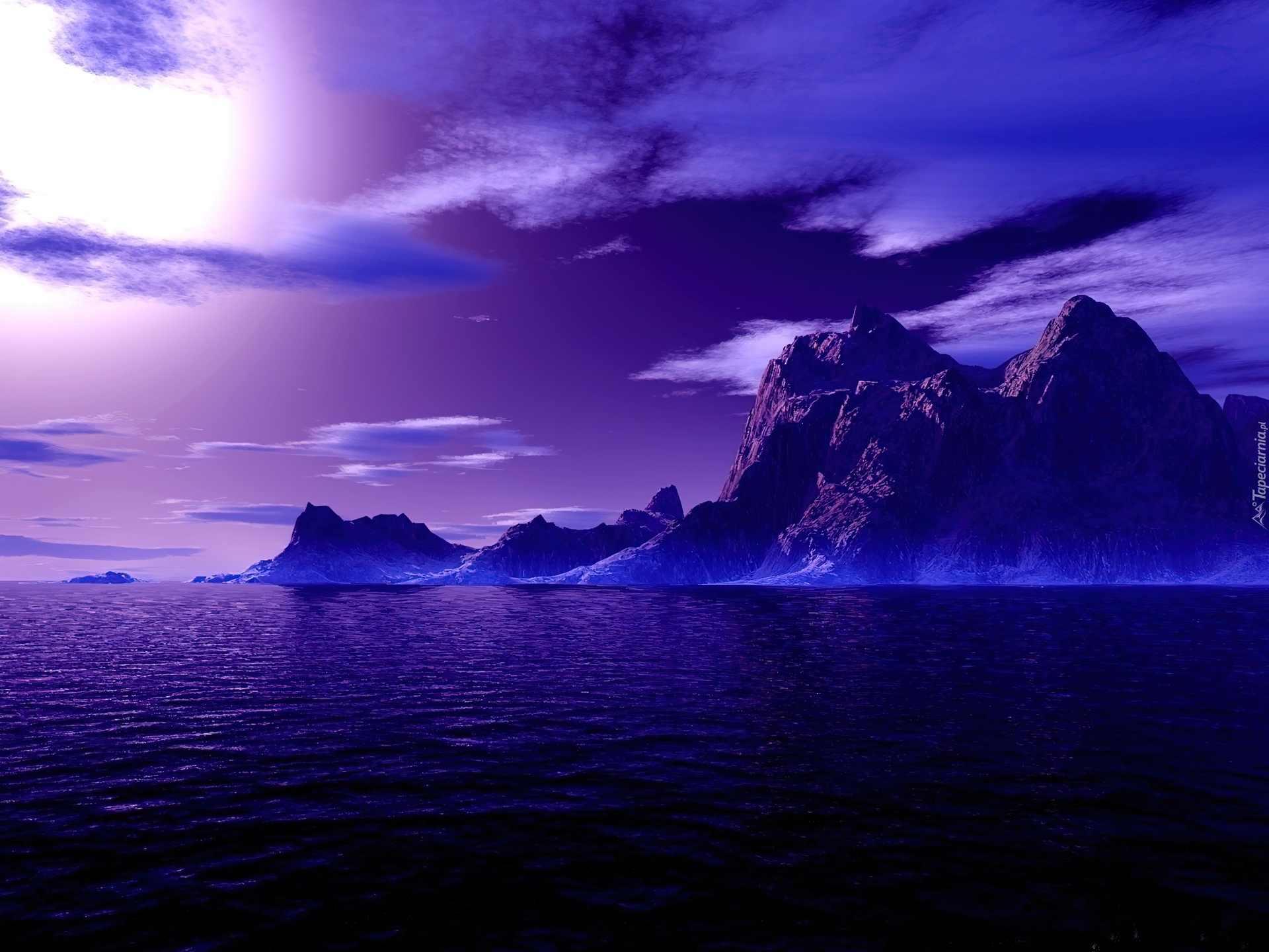 Edytor tapety: Morze, Górzyste, Wyspy, Rozświetlone, Światłem, Księżyca