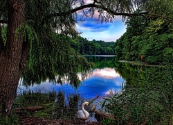 Edytor tapety: Jezioro, Lasy, Łąbędz