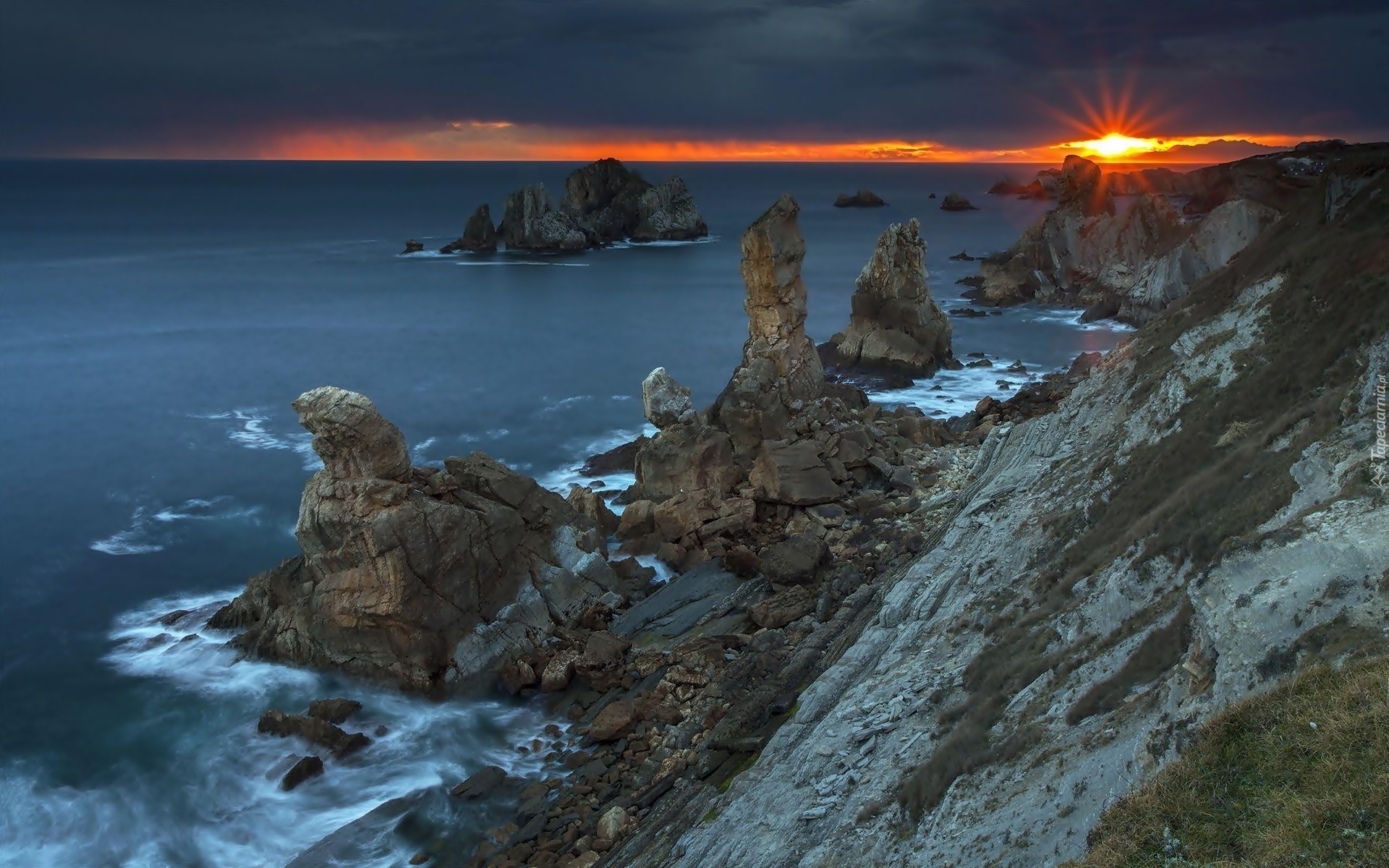 Edytor tapety: Klif, Morze, Zachód, Słońca