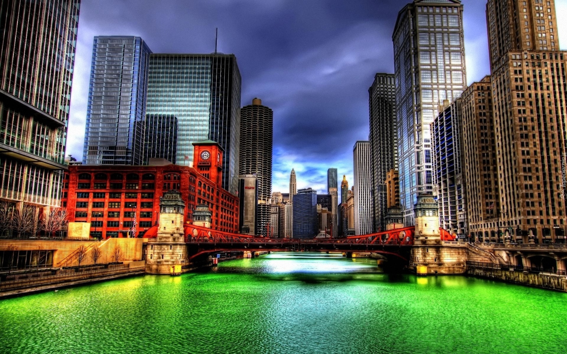 Edytor tapety: Drapacze Chmur, Most, Rzeka