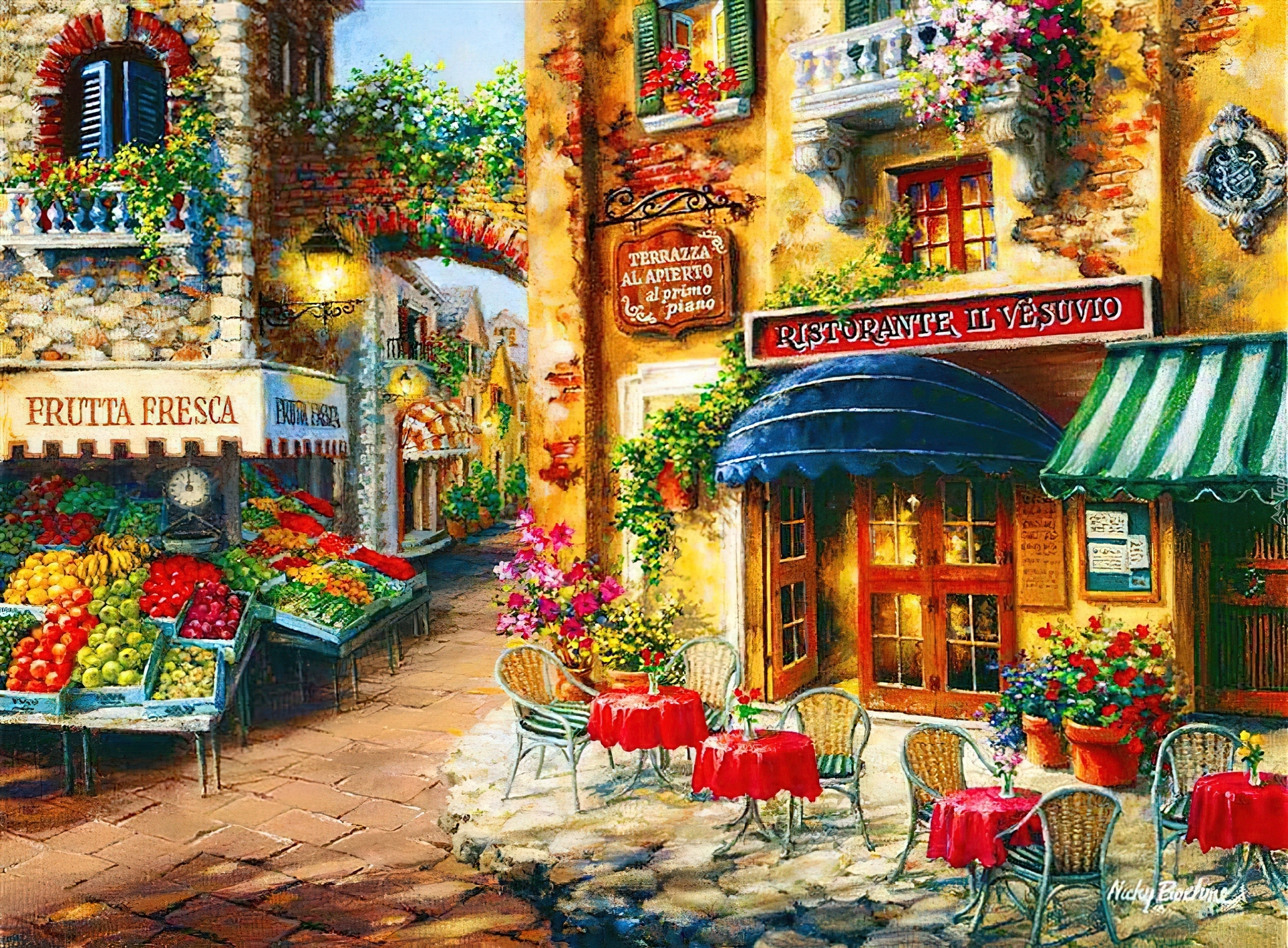 Edytor tapety: Ulica, Domy, Kawiarnia, Stoliki, Krzesła, Sklep