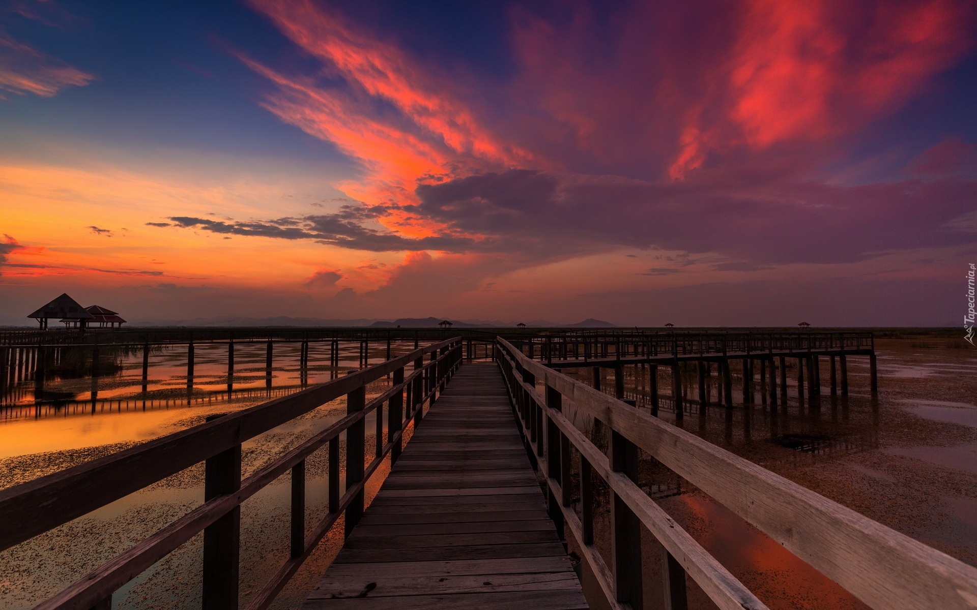 Edytor tapety: Zachód, Słońca, Morze, Molo
