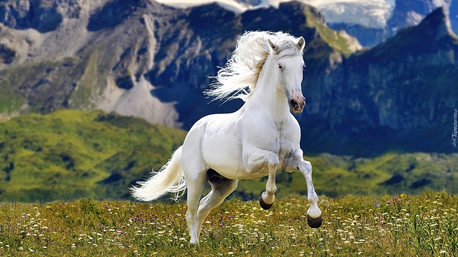 Edytor tapety: Koń, Łaka, Góry