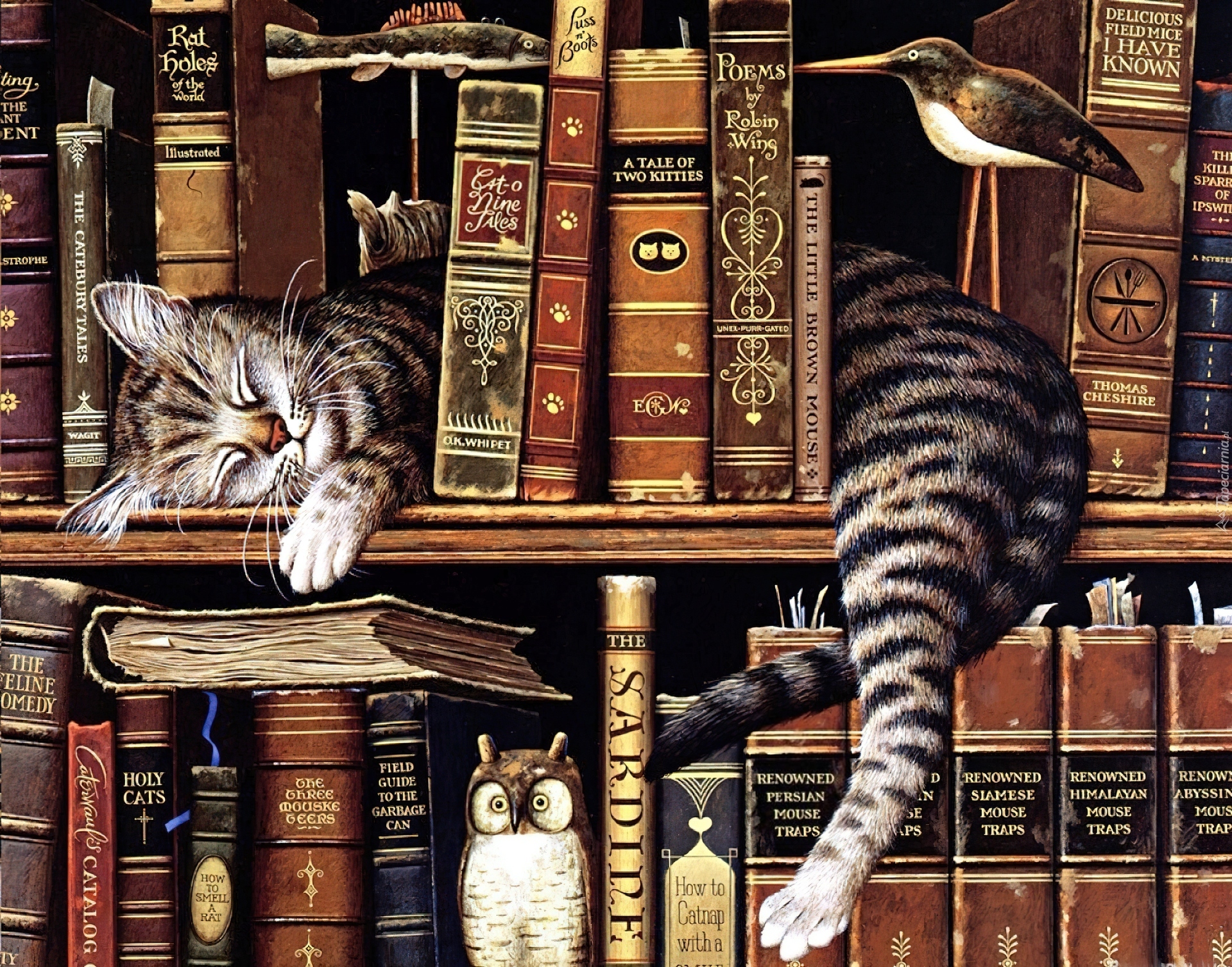 Edytor tapety: Śpiący, Kot, Regał, Książki
