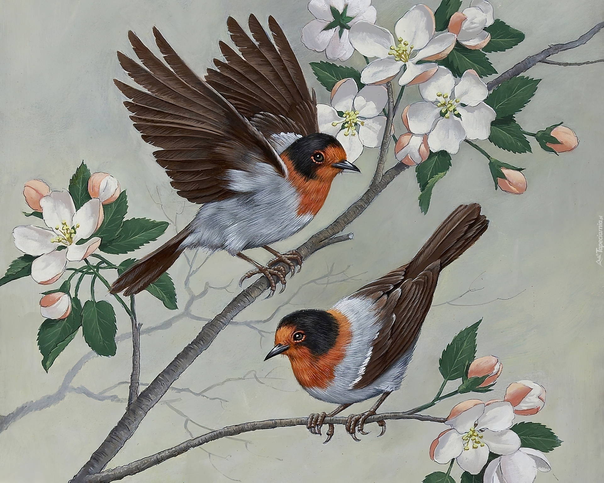 Edytor tapety: Ptaki, Gałązka, Kwiatki
