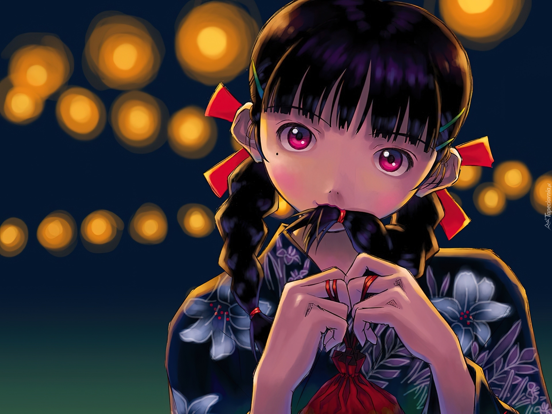 Edytor tapety: Nagko, warkocze, strój w kwiaty