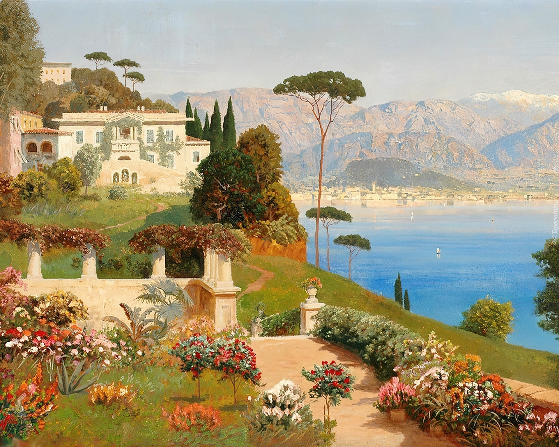 Edytor tapety: Ogród, Morze, Dom, Góry, Kwiaty