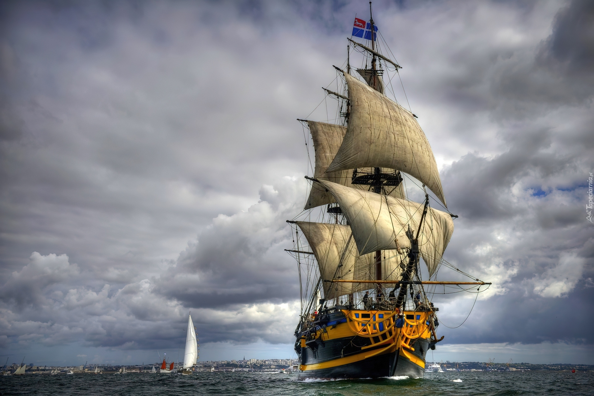 Edytor tapety: Żaglowiec, Zachmurzone, Niebo