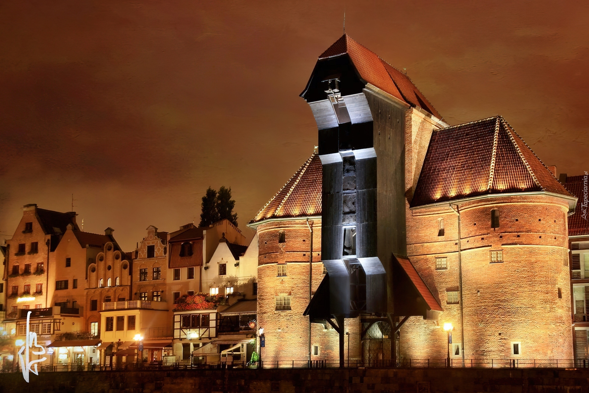 Edytor tapety: Kamienice, Oświetlony, Spichlerz, Miasto, Gdańsk, Polska