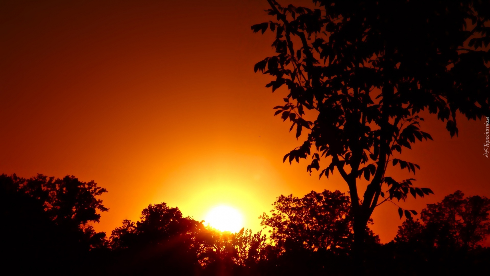 Edytor tapety: Zachód, Słońca, Niebo, Drzewa