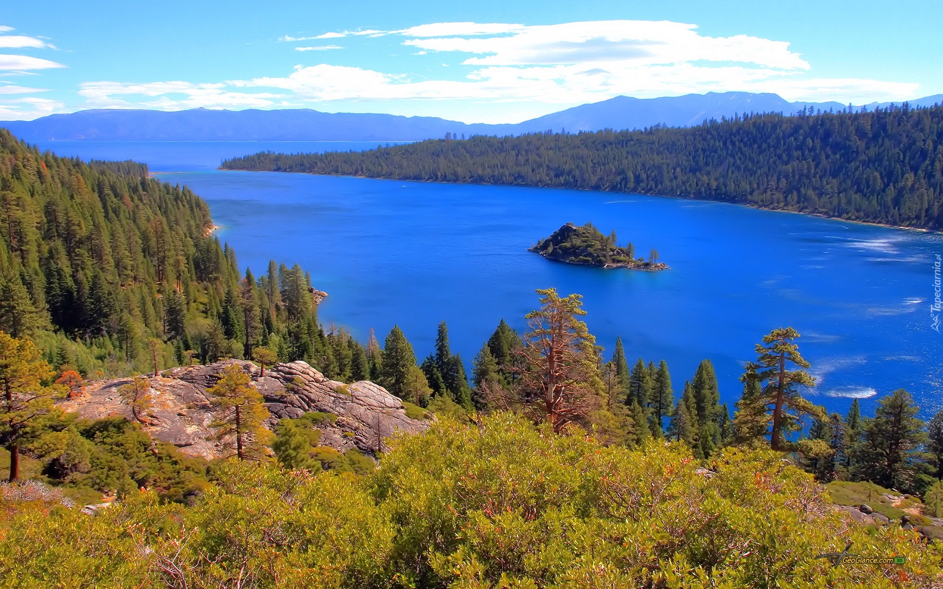 Edytor tapety: Jezioro, Wysepka, Lasy, Tahoe, Kalifornia