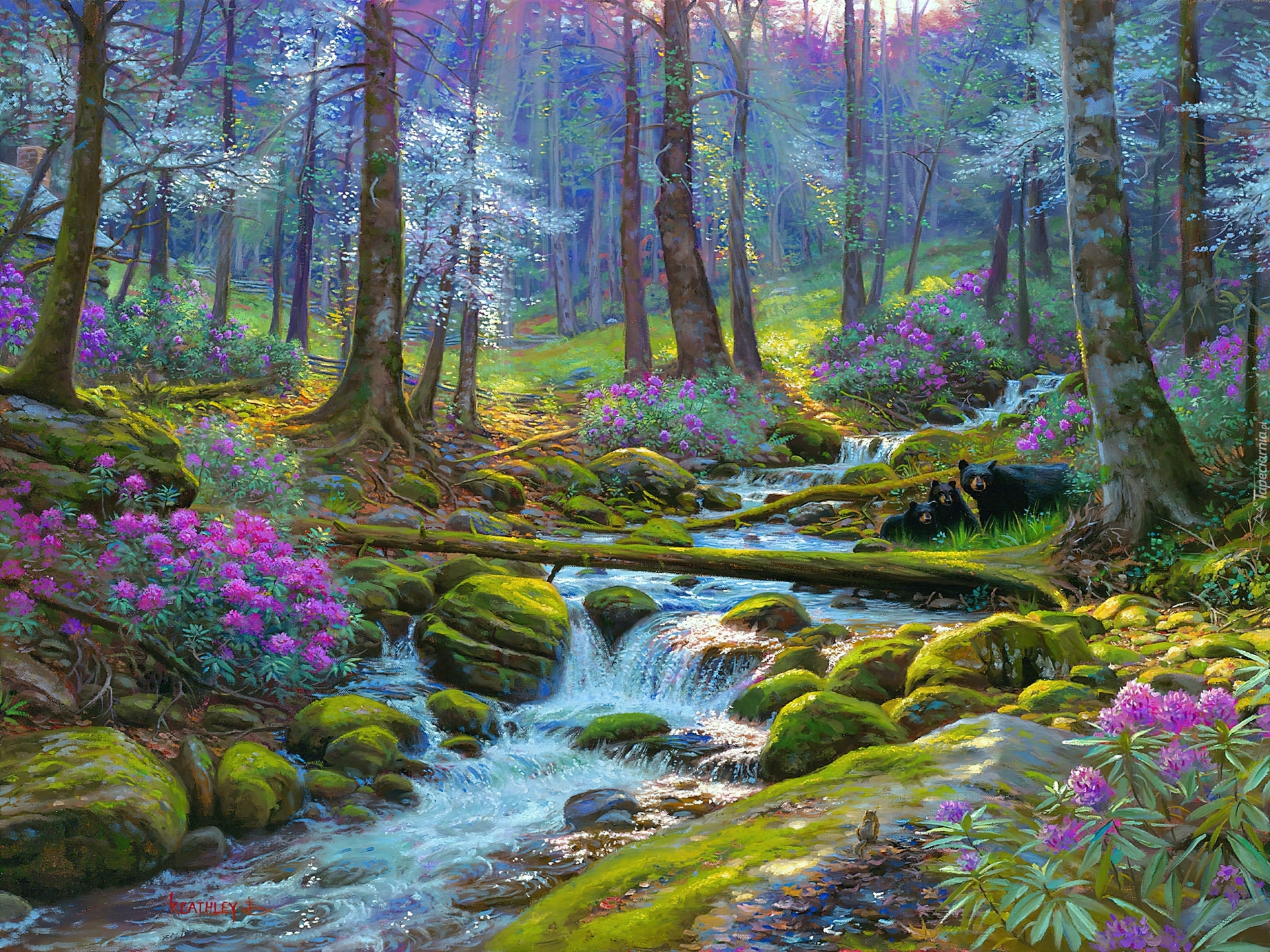 Edytor tapety: Las, Rzeka, Strumyk, Kwiaty, Kamienie