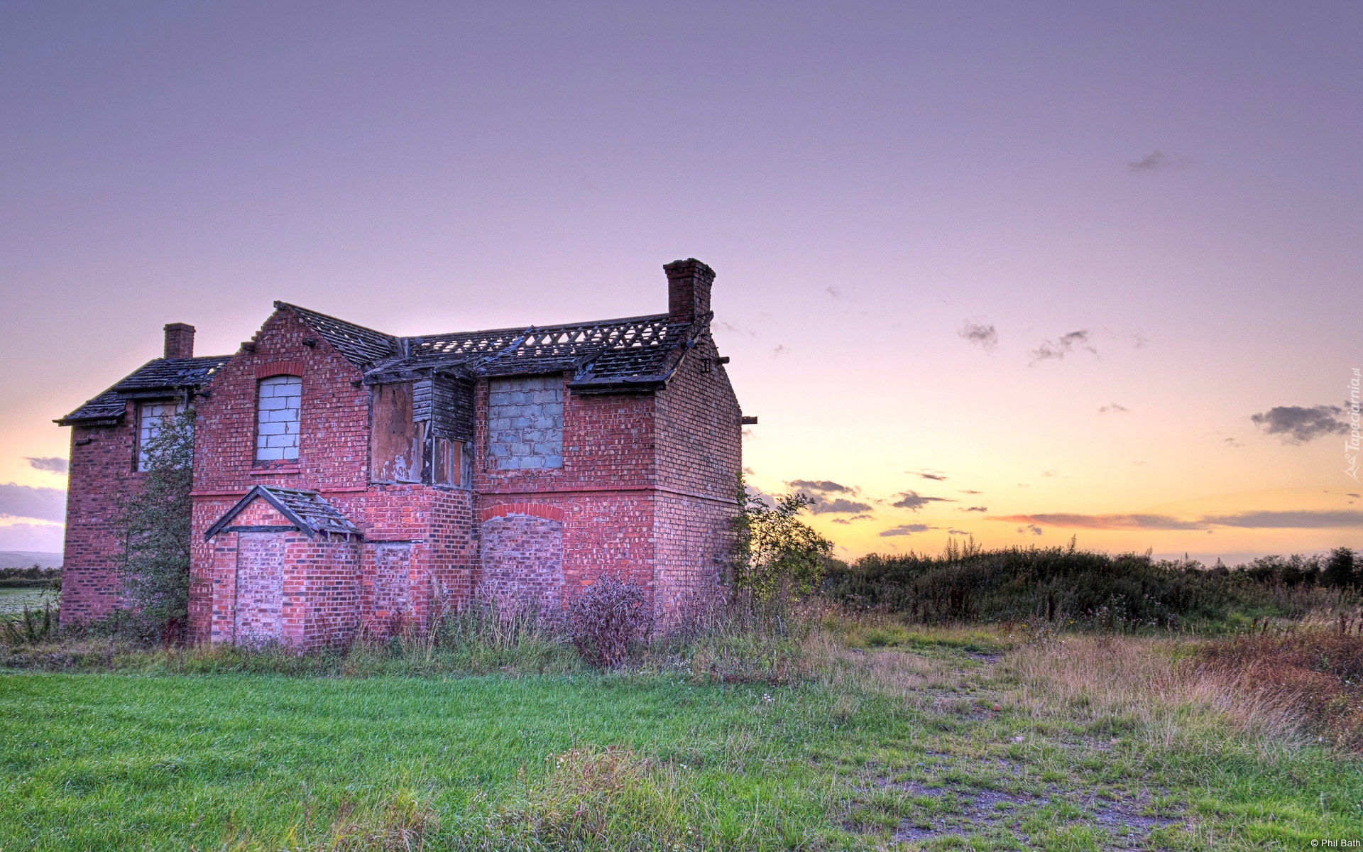 Edytor tapety: Opuszczony, Dom, Wieś, Zachód, Słońca