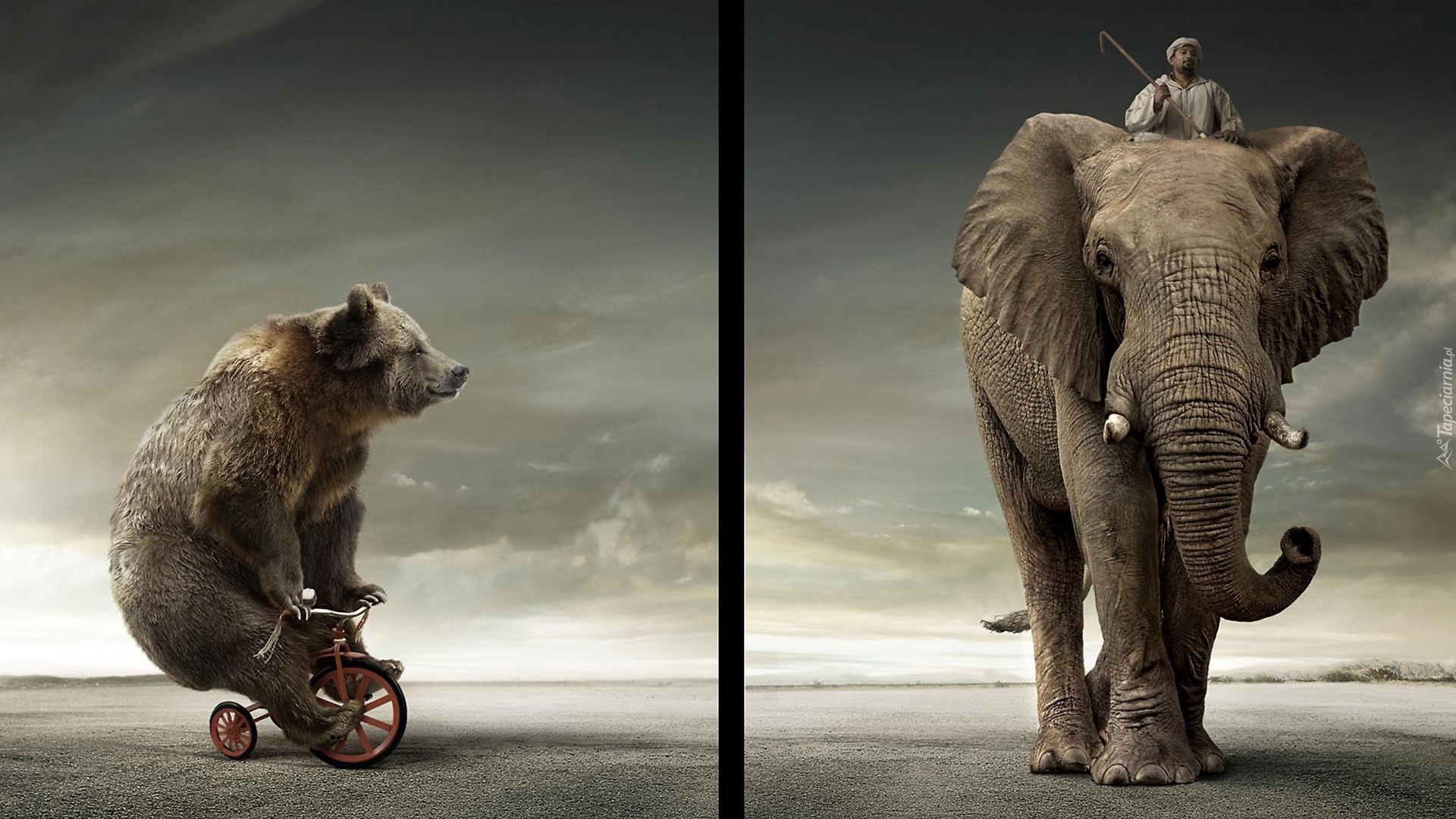 Edytor tapety: Niedźwiedź, Rower, Słoń, Człowiek
