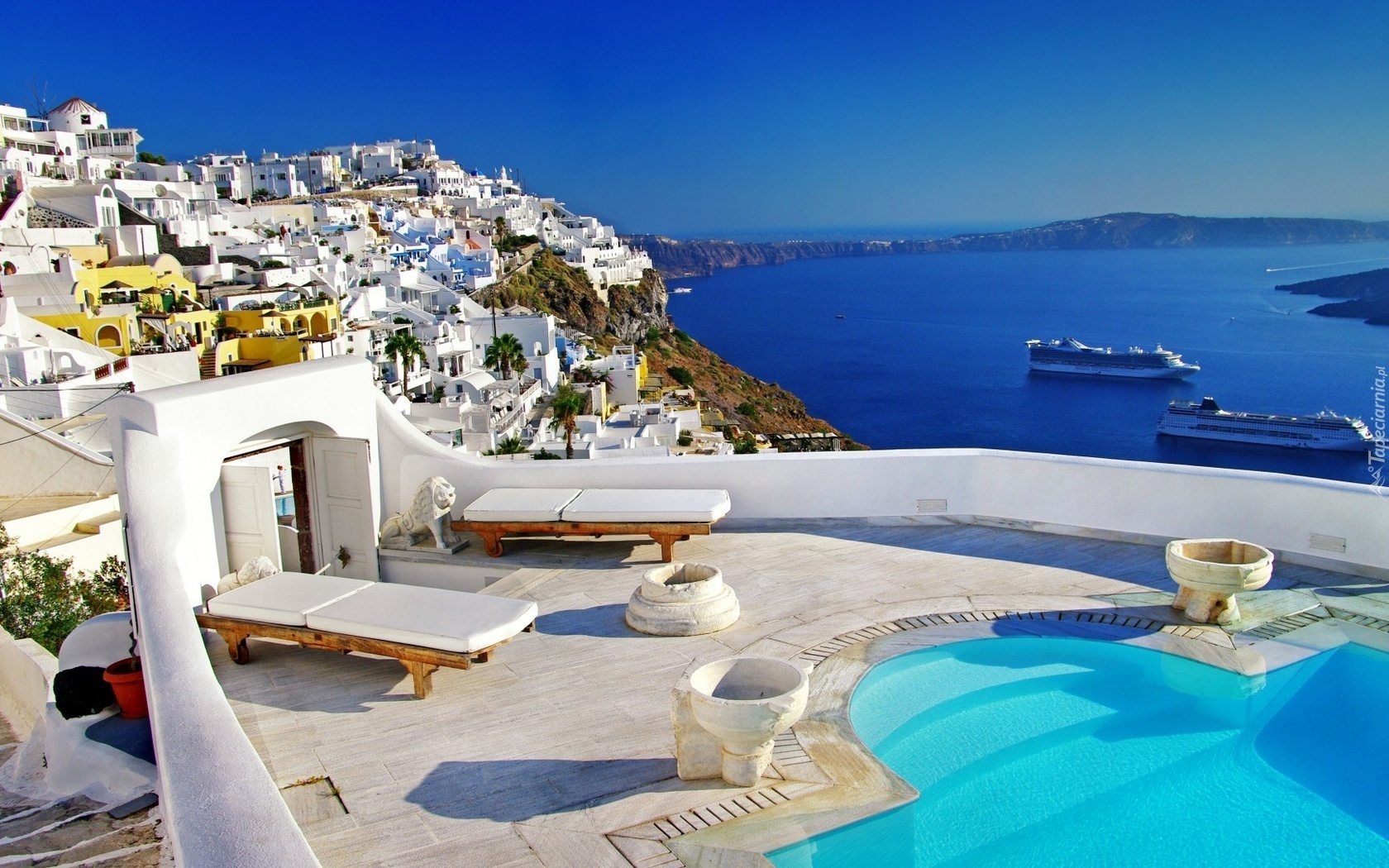 Edytor tapety: Grecja, Santorini, Morze, Spa