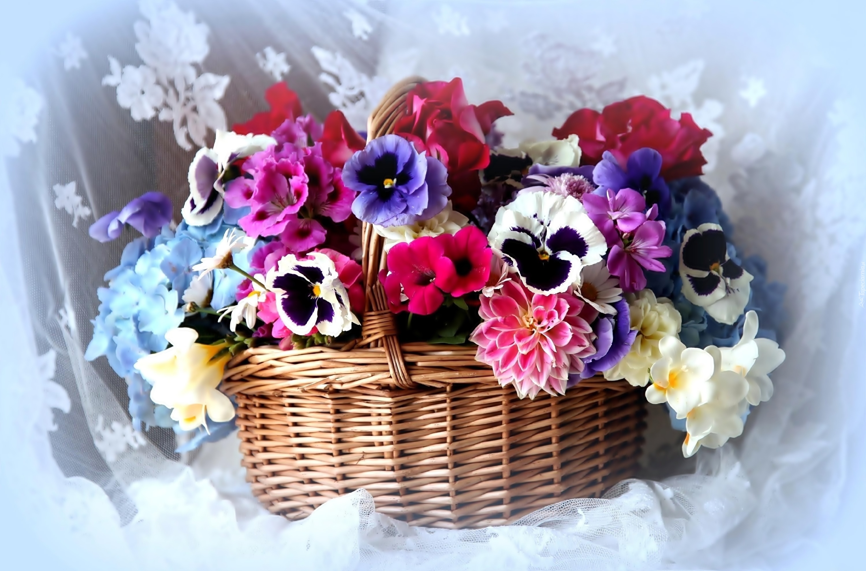 Edytor tapety: Bukiet, Kolorowych, Kwiatów, Bratki, Dalie