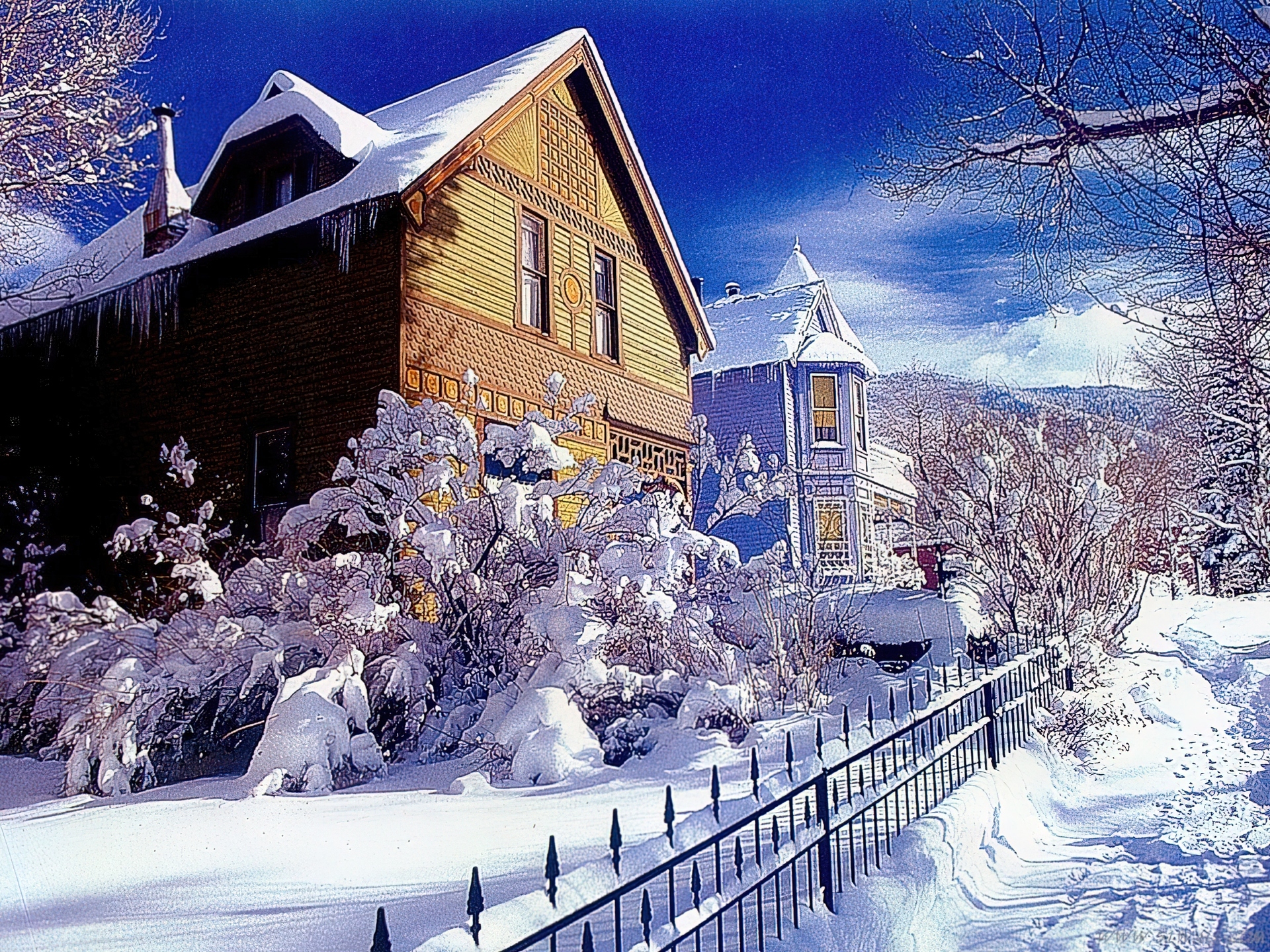 Edytor tapety: Zima, Domy, Płotek