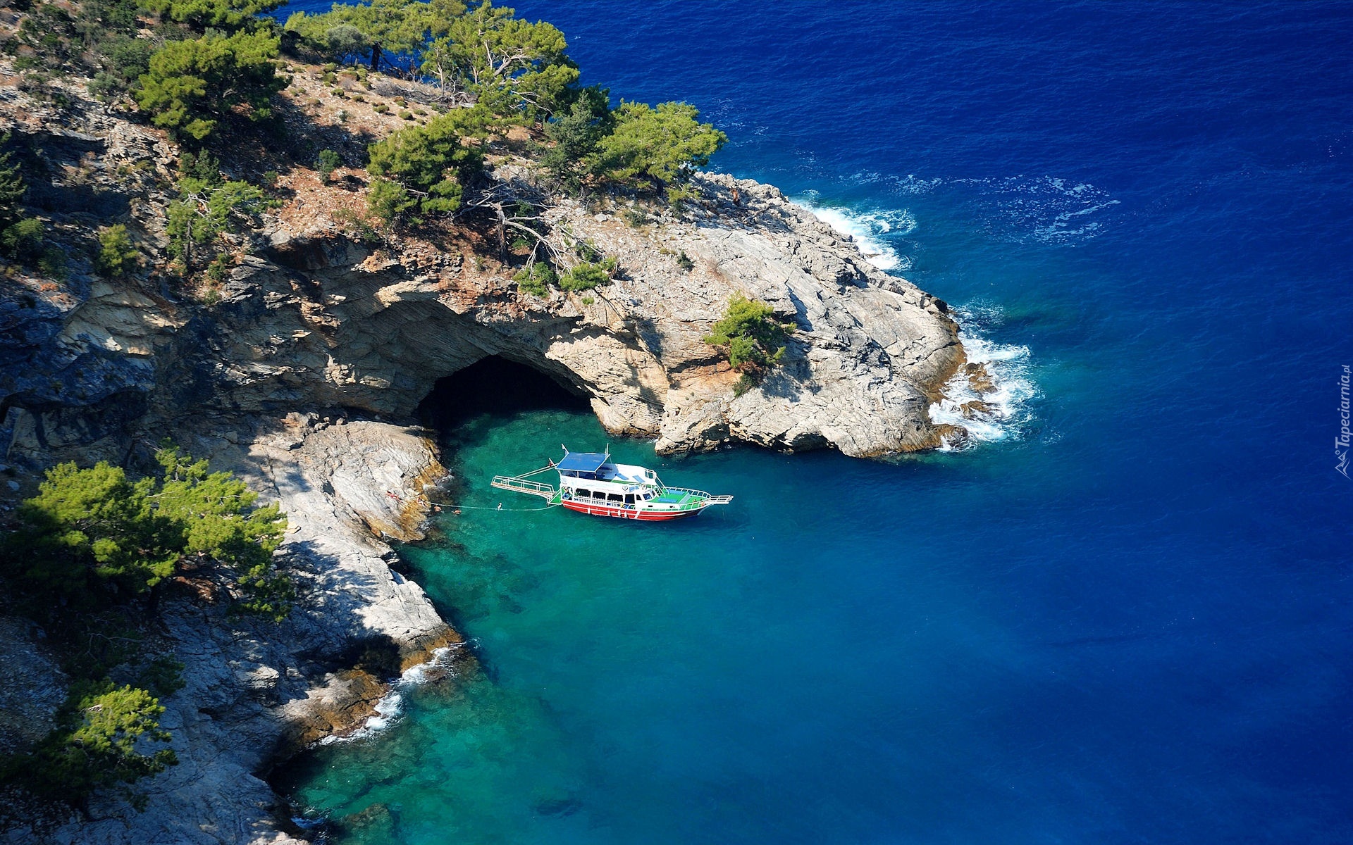 Edytor tapety: Turcja, Zatoka, Oludeniz, Jacht, Morze Śródziemne, Skały