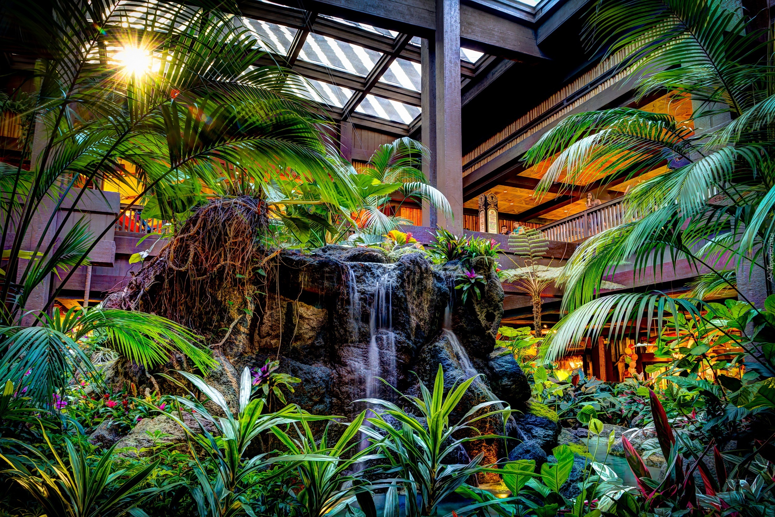 Edytor tapety: Ogród, Botaniczny, Kaskada, Palmy