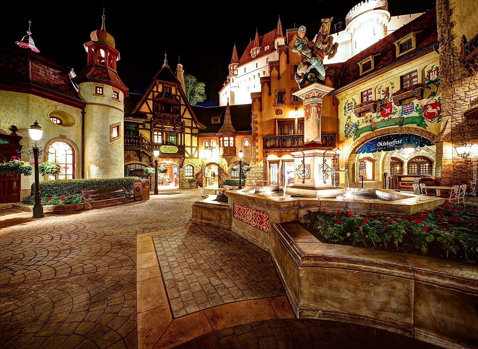 Edytor tapety: Miasto, Domy, Noc, Disneyland, Kalifornia