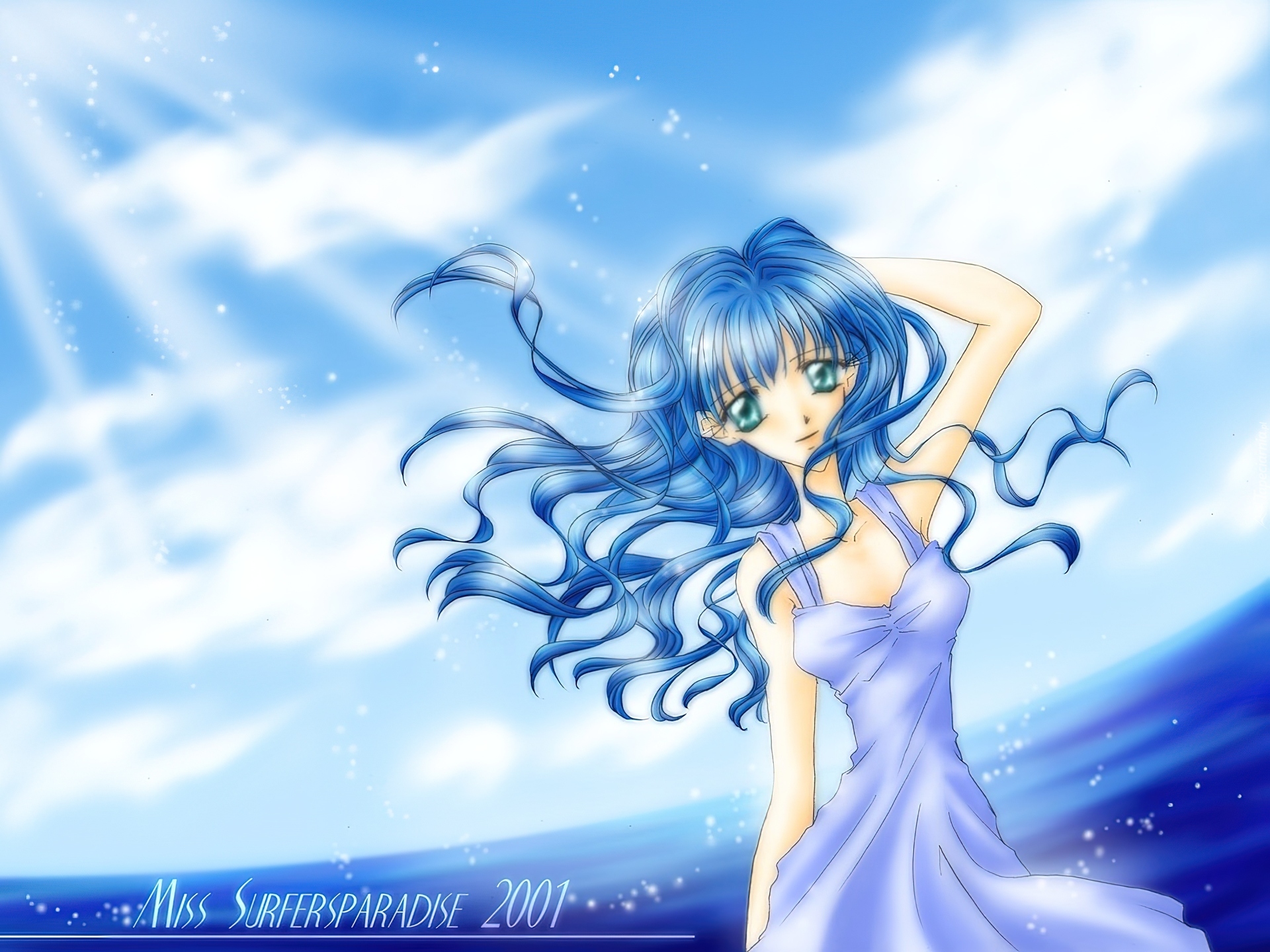 Edytor tapety: Miss Surfersparadise, sukienka, niebieskie włosy