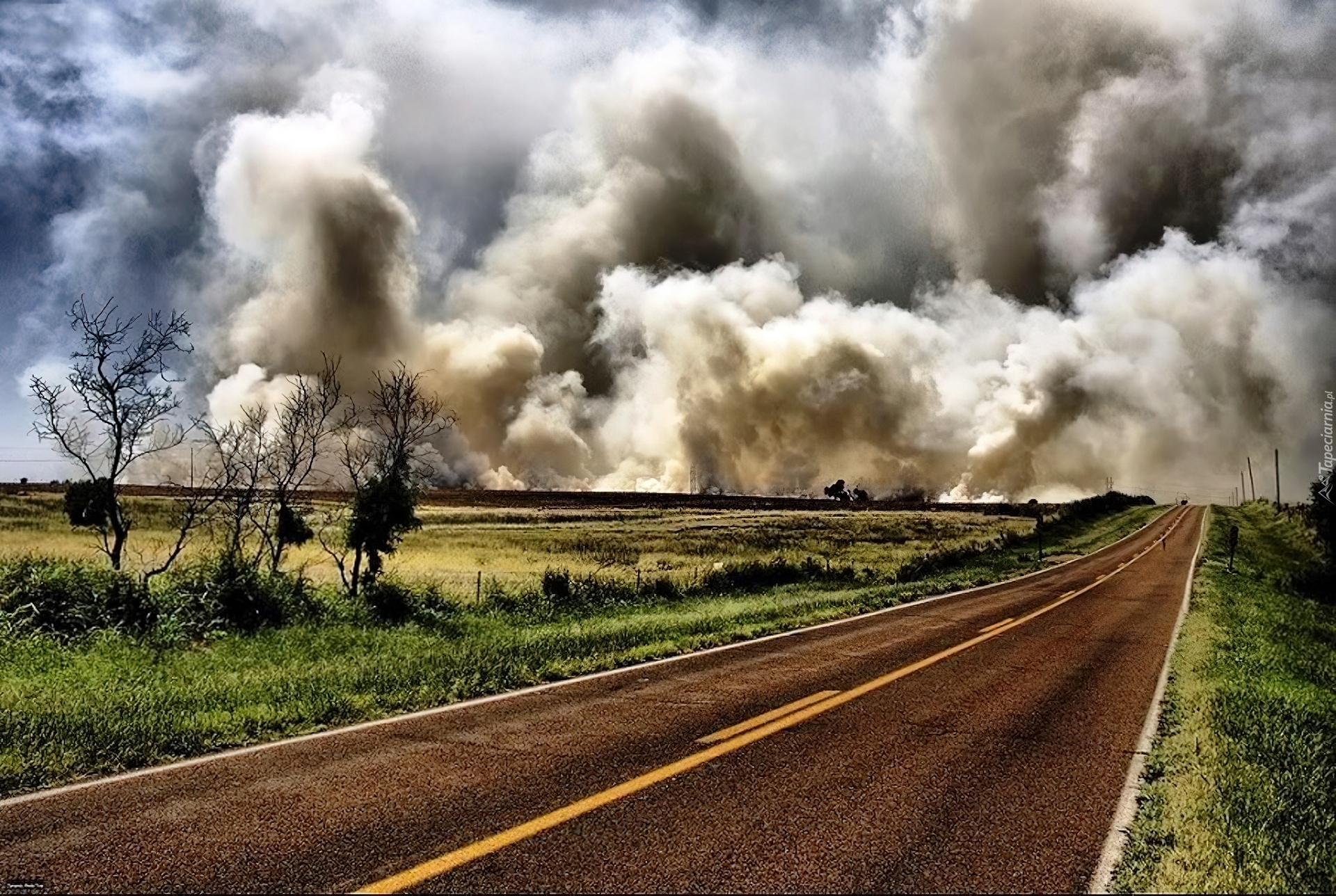 Edytor tapety: Łąki, Szosa, Burzowe, Chmury