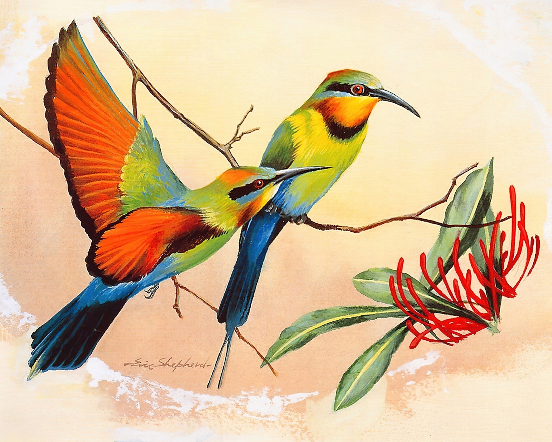 Edytor tapety: Dwa, Kolorowe, Ptaki, Gałązka
